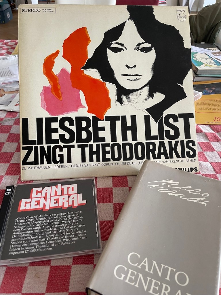 De Chileense dichter Pablo Neruda voltooide zijn imposante epische gedicht Canto General in 1948. Net als Theodorakis werd hij door het Chileense regime van Gonzalez Videla uit zijn land gezet. Theodorakis, zelf ook verbannen wegens zijn verzet tegen de militaire junta, vond in Pablo Neruda’s werk een geestverwant. Hij kreeg van de toenmalige Chileense president Salvador Allende de opdracht op basis van Canto General een oratorium te schrijven. De première in Szantoago Chili ging niet door vanwege de staatsgreep vcan generaal Pinochet. Allende kwam daarbij om het leven. Canto General is een monumentale ode aan Latijns-Amerika, zijn volkeren, zijn strijd en de natuur. Theodorakis selecteerde 13 gedichten uit het meer dan 15.000 verzen tellende werk en zette ze op muziek met een zeldzame intensiteit. Het resultaat is een oratorium dat klassieke en volksmuziek vermengt met Latijns-Amerikaanse ritmes en Griekse dramatiek, geladen met een politieke en menselijke betekenis. Het meesterwerk wordt zelden uitgevoerd. Mocht het ooit weer ergens in Nederland of België zover komen, ik ben erbij!